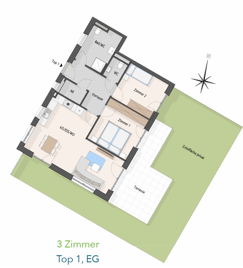 - großzügige Allgemeinflächen mit Kinderspielplatz, Fahrrad- und Kinderwagen-Abstellräume
