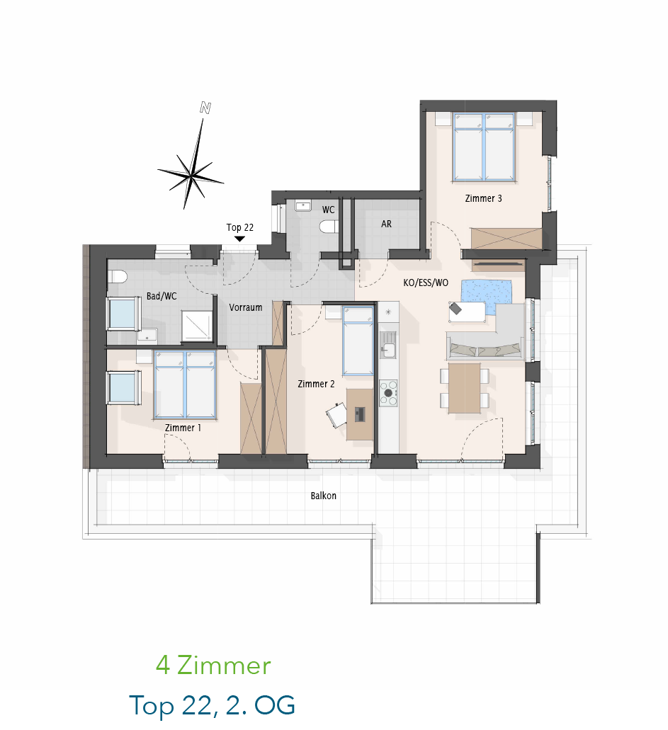 - 22 Eigentumswohnungen mit Garten, Balkon, Loggia, (Dach-)Terrasse